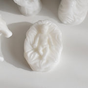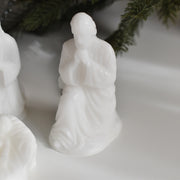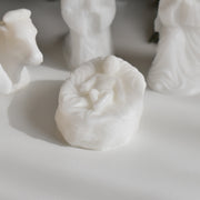 母マリアと父のヨセフ、そして牛とロバがイエス・キリストを優しく見守るように囲んでいます。一つ一つ手のひらに乗るほどの可愛らしいサイズですが、穏やかな表情や、柔らかな雰囲気が蝋で見事に再現されています。