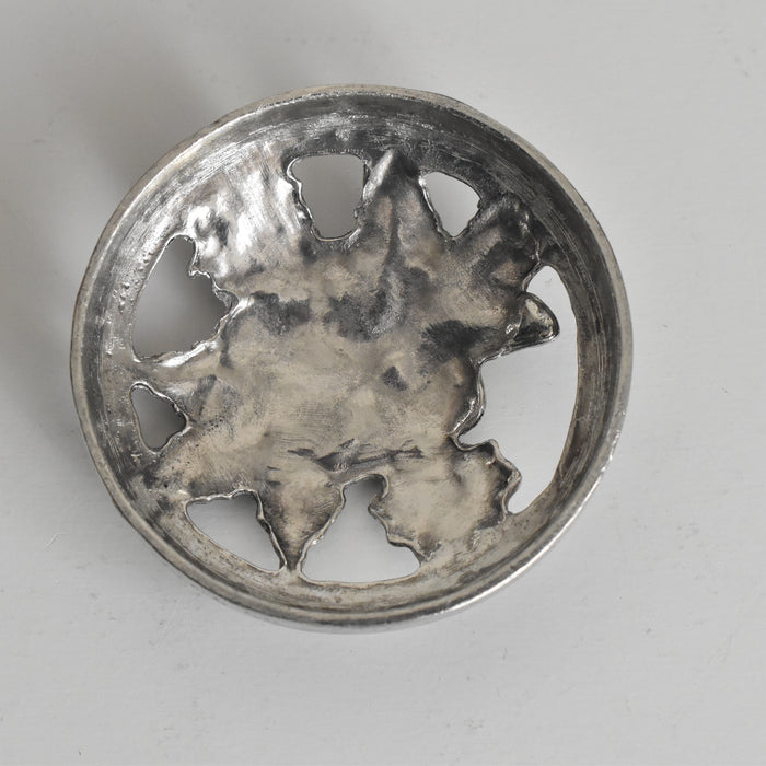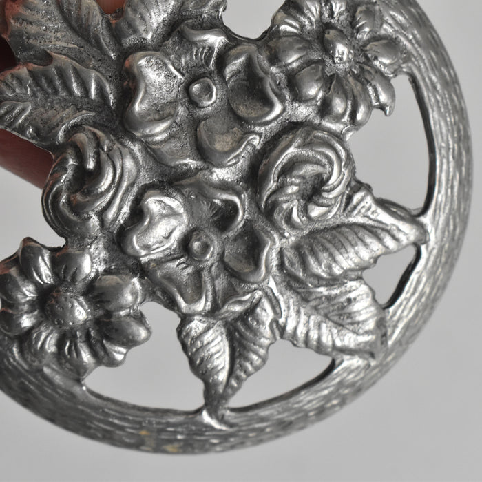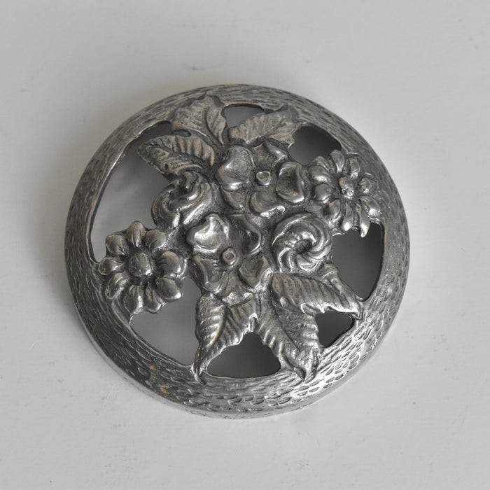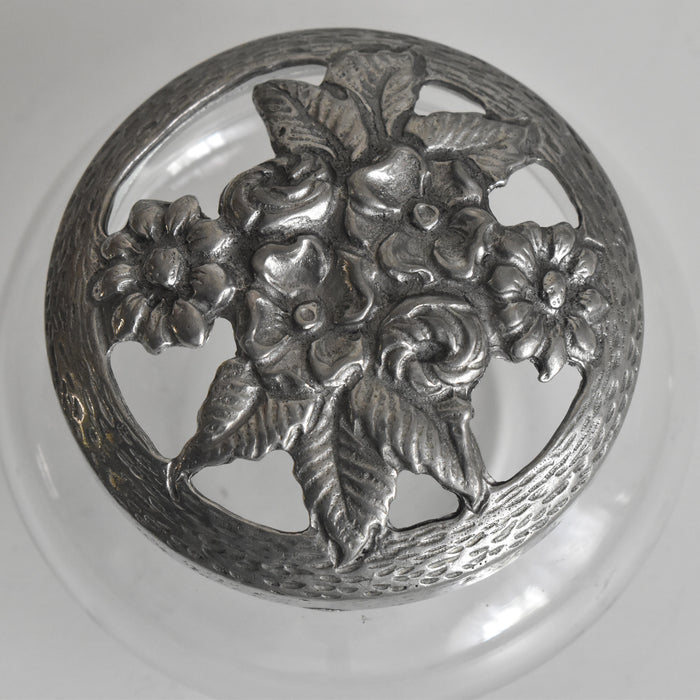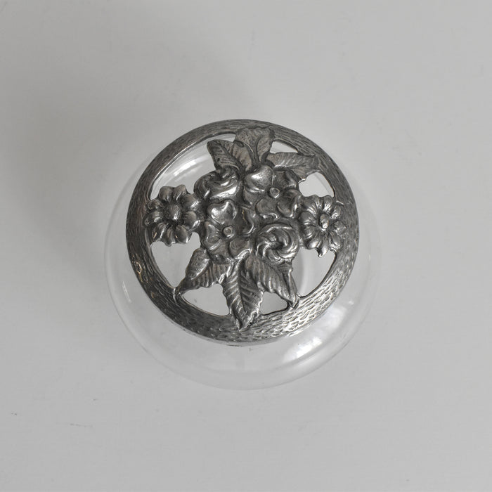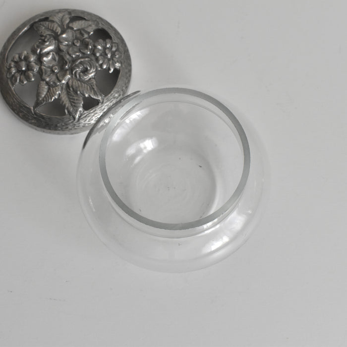 ピューター製の花模様の蓋と、透き通るガラスが相まった美しいポプリ入れです。