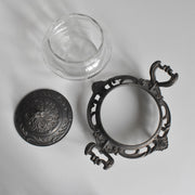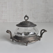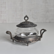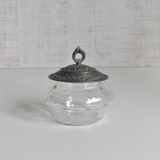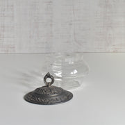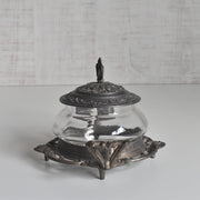 クリアなガラスを、デコラティブな金属製の台座と蓋で挟み込んだクラシカルな一品。
