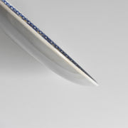 深い藍色のグラデーションに、職人が一点ずつ筆を入れた「黄色」のアクセント。