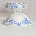 白磁の素地に、鮮やかで深みのあるコバルトブルーの転写画で、可憐なアネモネなどの花々が全体にわたって優雅に描かれています。