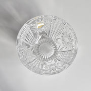繊細なカットが入ったガラスに、どっしりとした金属製の蓋を合わせたミックススタイル。