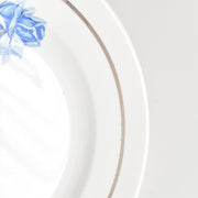 上品で可憐な印象:優しいブルーローズのプリントが、上品で可憐な印象を与えます。
