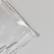 ぽってりとした厚みのあるガラスと、光を美しく反射する多角形のカッティングが、どこか懐かしく温かい雰囲気を醸し出します。