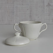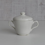 潔い白の中に、クラシックな装飾が映えるヴィンテージ・シュガーポットです。