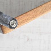 希少な模様を持つブナ材を厳選し、フランスの工房で一つひとつ手作業で仕上げられています。表面は天然の亜麻仁油で保護されており、使うほどに風合いが増していくのが特徴です。持ち手部分にあしらわれた革の取っ手が、ナチュラルな木材に洗練されたアクセントを加えています。