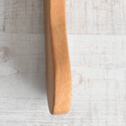 希少な模様を持つブナ材を厳選し、フランスの工房で一つひとつ手作業で仕上げられています。表面は天然の亜麻仁油で保護されており、使うほどに風合いが増していくのが特徴です。持ち手部分にあしらわれた革の取っ手が、ナチュラルな木材に洗練されたアクセントを加えています。