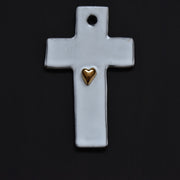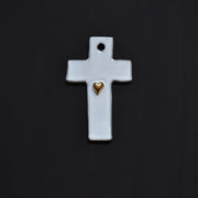 人気のクロス型は、神聖な教会を想わせます。中央の金のハートは、24金を特別な製法で流し込み仕上げています。シックなクロスに華やかさが加わり、魅力的なオーナメントに。