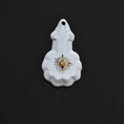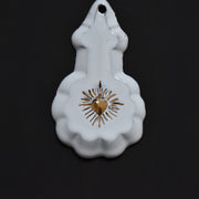 中央のハートは、24金を特別な製法で流し込み仕上げられています。手書きのハートのため、作り手の温もりを感じる素敵なオーナメントです。