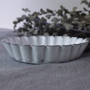 透き通る釉薬の白と、リズミカルで立体的な縁取りが合間って優しく温かな印象に仕上がっています。ケーキやタルトの型としてはもちろん、焼き菓子や料理を入れても素敵です。