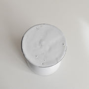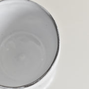 【黒い土と透き通る白】本体の黒い土と、表面の透き通るような白いエナメル(釉薬)のコントラストを存分に楽しむことができる一品です。