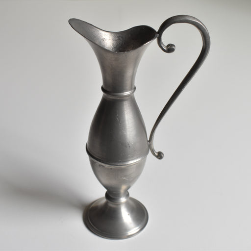 Brocante/蚤の市すっとのびた首が優美なデザイン。 一輪挿しとして使っても素敵ですが、そのまま本棚やコンソールに置いても美しいです。 柔らかな光の反射が魅力的なピューターはインテリア雑貨としておすすめです。 状態:多少の汚れや傷、歪みが見られます。 サイズ:直径8cm x高さ31cm 年代:20世紀中期か...