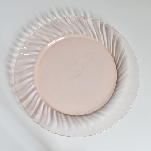 Brocante/蚤の市ArcorocのヴィンテージプレートRosalineシリーズです。 可愛いシャーベットビンクのプレート。その淡い色合いに心惹かれます。 スカートが靡くような滑らかな曲線が上品さを感じさせます。 状態:多少のカトラリー跡が見られます。 サイズ:直径22.5cm x高さ2cm 年代:1960年...