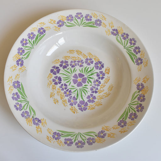 Brocante/蚤の市FF Pexonne窯のアンティーク深皿Anneシリーズです。 ハンドペイントの可愛らしい花模様。顔彩の重なりや、筆の動きを感じ、手仕事の温もりが伝わってきます。 柔らかで優しい雰囲気のアンティークプレートです。 状態:縁に浅い釉薬の剥がれがありますが、欠けやヒビがなくいい状態です。製造の...