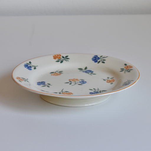 Brocante/蚤の市HBCM(Creil et Montereau)窯のヴィンテージ脚付きプレート"PRINTEMPS"シリーズです。 ブルーとオレンジのコントラストが華やかな脚付きプレート。ころんとしたバラ模様がとても可愛らしい印象です。 テーブルセンターにしたり、アクセサリートレイにしたりとお好みのスタイ...