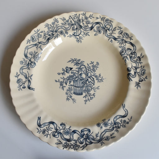 Brocante/蚤の市Longchamp窯のアンティークプレートRubanシリーズです。 花々を結びつけるリボン。可愛らしく可憐な印象のアンティークプレートです。 波打つ縁のレリーフは、マーガレットのよう。絵柄のリボンが躍動的に感じられます。 状態:目立った傷もなく、とてもいいい状態です。 サイズ:直径24.5cm...
