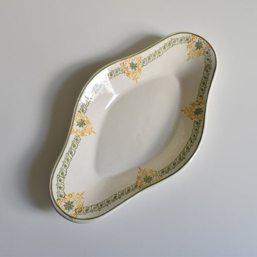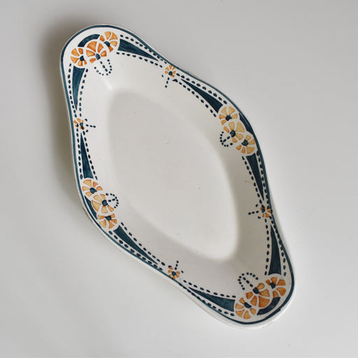 Brocante/蚤の市Badonviller窯(バドンヴィレー窯)のアンティークラヴィエIsoldeシリーズです。 オレンジと黒のステンシルが、レトロな雰囲気を感じさせます。滑らかな楕円形も可愛らしくおすすめです。 状態:貫入やシミが見られますが欠けやヒビがなくいい状態です。 サイズ:22.5cm x 14cm x...
