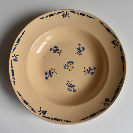 Brocante/蚤の市K&G Luneville窯のアンティーク深皿”FLORE” シリーズです。 ステンシルの可愛いヤグルマギク。フランスの田舎のような、温もりある優しいデザインに心癒されます。 状態:製造時にできた小さな突起とシミがありますが、その他欠けやひびもなくとてもいい状態です。 サイズ:直径23...