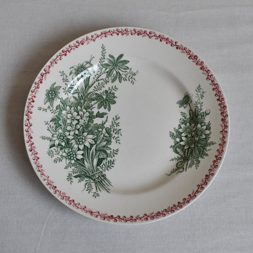 Brocante/蚤の市Boch Freres KeramisのBouquets シリーズの深皿です。 ベルギー製のプレートで20世紀初めのものになると思われます。 赤色の可愛らしい縁取りと、緑の花束が美しく調和しています。クリスマスにもよく合う色合いです。 ヒビやかけはなくとても綺麗な状態のプレートになります。...