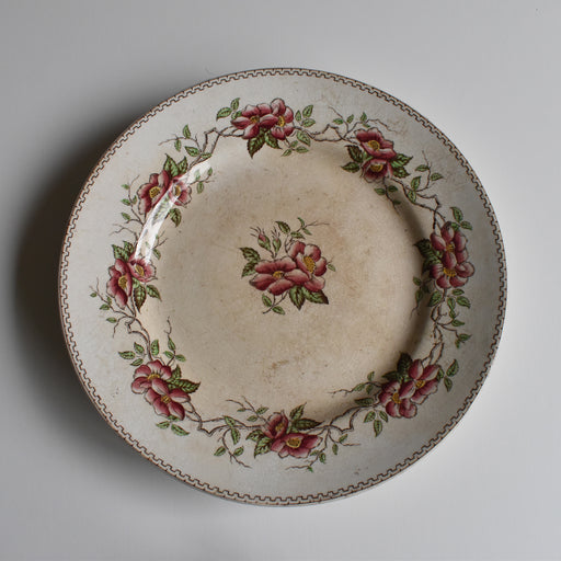 Brocante/蚤の市U&C Sarreguemines窯のアンティーク脚付きプレートEglantierシリーズです。 ”Eglantier”とは、野薔薇のこと。 勿体無いくらい沢山の花をつけ、道端に咲く野薔薇。自由に咲き誇る自然な姿が美しく描かれています。 ハンドペイントで色付けが施されているため、花の雰...