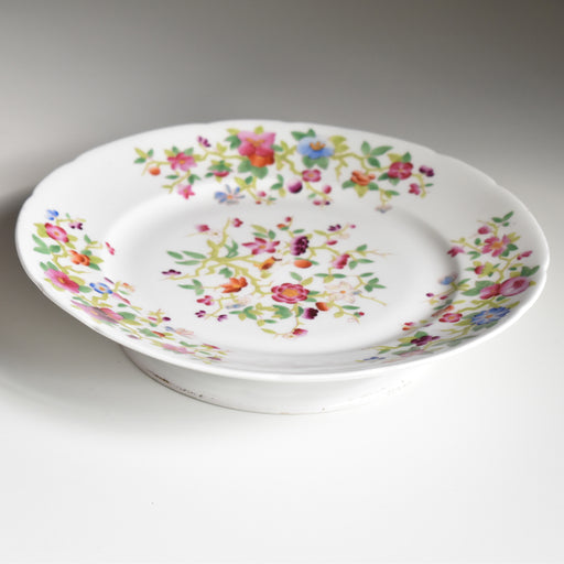 Brocante/蚤の市イギリスの磁器と思われる脚付きプレート。 鮮やかな色使いで描かれた花模様。トランスファーの上からハンドペイントで色が載せられ、きめ細やかな手仕事を感じます。Chinoiserieを感じさせる華やかで美しいデザイン。磁器の透き通る美しい白地に、生命力溢れる花々が咲き誇る素敵なシリーズです。 高さ...