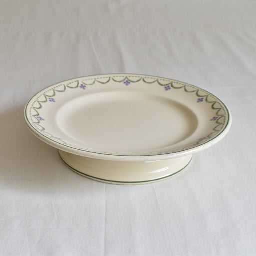 Brocante/蚤の市ロンウイ窯のViolettaシリーズのアンティーク脚付きプレートです。 ”Violetta”はスミレのこと。小さくて可愛らしいスミレのガーランド。控えめながらも、美しい紫色がアクセントとなり可憐で素敵な印象を受けます。 脚付きプレートがテーブルに並ぶだけでコーディネートの幅が広がり重宝するアイ...