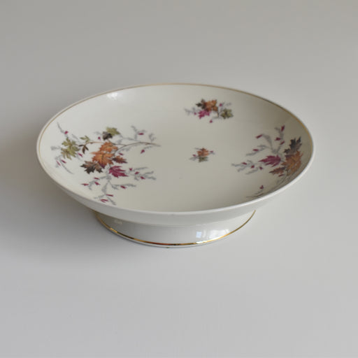 Brocante/蚤の市Raynaud窯のコンポティエです。 紅葉する葉の色合いが美しく、心奪われます。平面なプレートの中に、時間の流れや季節の動きを感じる素敵な一品です。 ピンクの小さな花や、金彩の縁取りもアクセントになりエレガントな雰囲気を生み出しています。ホリデーシーズンにぴったりです。 Raynaud(レイノ...