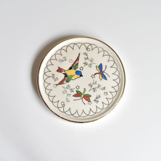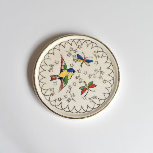 Brocante/蚤の市Longwy窯のヴィンテージ鍋敷きEnvolシリーズです。 Envol(アンヴォル)とは飛びだつことを意味します。シジュウカラのような鳥と蝶々が飛んでいて可愛いらしい春らしいでしんです。全体に金彩の小花が引き立てます。 鳥と蝶々の色はハンドペイントになっています。 立てかけて飾ったり、テー...