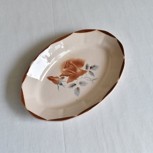 Brocante/蚤の市フランス デイゴワンサルゲミンヌのヴィンテージオーヴァルプレート です。 コレクションはTHAISで葉っぱの模様が描かれています。 裏にはディゴワンサルグミンヌの印があります。 年代は1920年〜1950年代のものです。 シンプルなフレームの中に、可愛らしい葉が重なり合う絵が入っているようです...