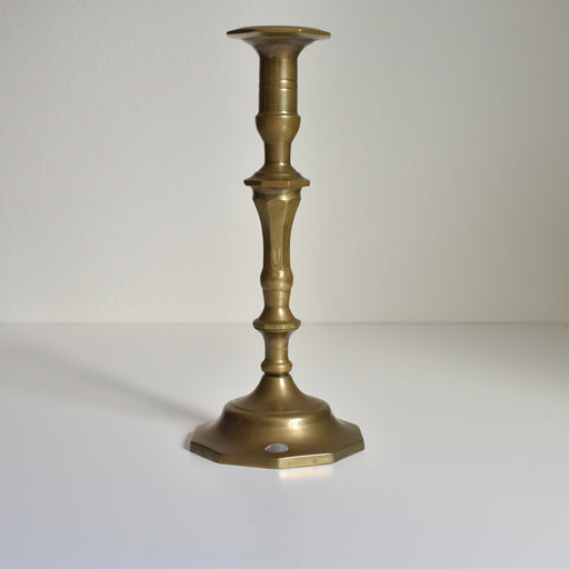 Brocante/蚤の市ヴィンテージの真鍮製キャンドルホルダー。 温かい光沢を放つ、真鍮のクラシカルな一本立て 重厚な存在感と、アンティークならではの温かいゴールドの輝きが魅力の真鍮(ブラス)製キャンドルホルダー。 安定感のある八角形の台座と、クラシカルなバルスター型のフォルムが、空間に格式高い華やかさをもたらしま...