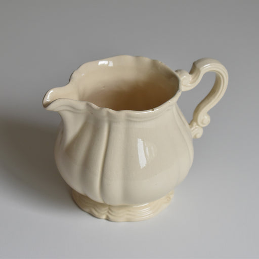 Brocante/蚤の市Digoin & Sarreguemines窯のヴィンテージのクリーマー Ivoireシリーズ花リムです。 シンプルで美しい花リムと少しクリーム色がかった色合いが、優しく可憐な印象を生み出します。 リムの形に合わせて表面も少し波打ち、シンプルながらも表情豊かで上品な佇まいが魅力的です。...