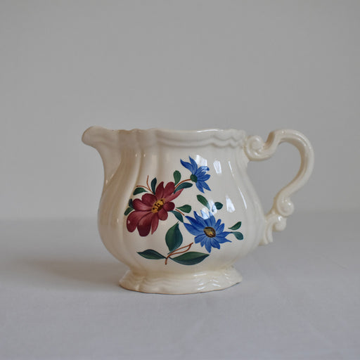 Brocante/蚤の市Digoin & Sarreguemines窯(ディゴワン&サルグミンヌ窯)のヴィンテージクリーマーArabesques(アラベスク)シリーズです。 20世紀中期に作られた温かみのある乳白色の肌に、繊細な金彩の縁取りと、生き生きとした花のプリントが美しく映えます。 咲き誇る花々は、...
