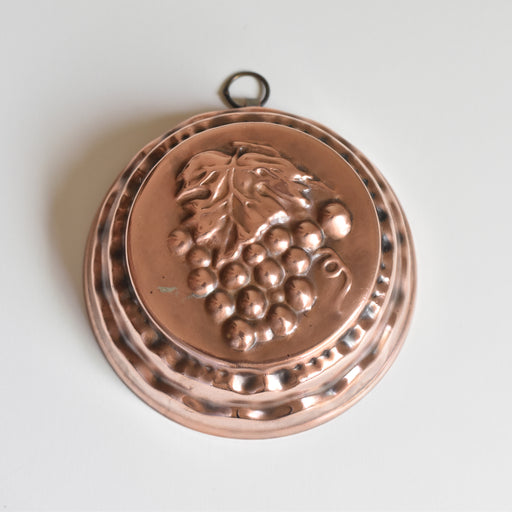 Brocante/蚤の市フランスヴィンテージのコッパーモルドです。こちらは葡萄柄。色合いが個性的な雰囲気を出しインテリアとしてお楽しみいただけます。 キッチン周りの壁やシェルフに飾ると素敵。目をひくインテリア雑貨になりおすすめです。 写真撮影の小物や店舗の装飾としても素敵です。 状態:傷、汚れや錆が見られます。装飾用...