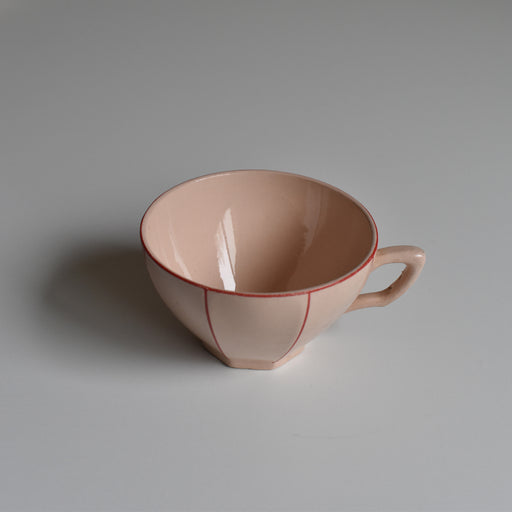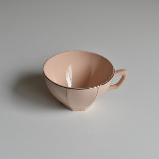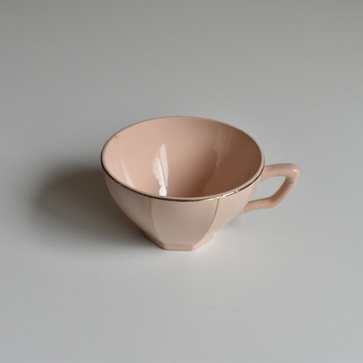 Brocante/蚤の市Digoin & Sarreguemines窯のヴィンテージカップ9147番シリーズです。 オクトゴナル(8角形)のシャープさと淡いサーモンピンクが目を引くヴィンテージカップ。金彩が施され少し華やかな印象。 両手にすっぽりと収まるサイズ感も可愛らしく愛らしさを感じさせます。 小物入れと...