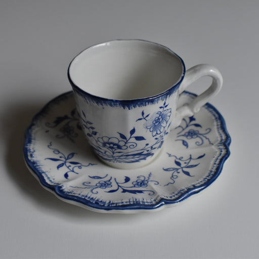 Brocante/蚤の市Digoin & Sarreguemines窯 (でィゴワン&サルグミン窯) のヴィンテージコーヒーカップ&ソーサーRohanシリーズ(花リム)です。 シンプルながらも美しい花リムと、少しクリームがかった色合いが、優しく可憐な印象を生み出します。リムの形に合わせて表面もわずかに波打って...