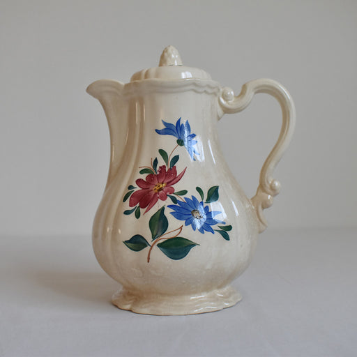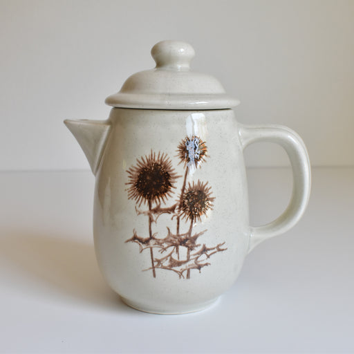Brocante/蚤の市Sarreguemines窯のヴィンテージコーヒーポットです。 アザミの花が一枚一枚絵付けされています。シンプルな色合いですが印象的なデザインです。 ころんと丸み帯びたフォルムも可愛らしく素敵。 ストーンウェアのプレートのため、重厚感もあります。 状態:状態が良く欠けや傷はございません。 サイ...
