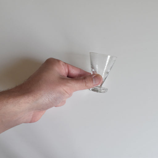 Brocante/蚤の市19世紀終わりから20世紀初頭に作られた、手吹きガラスのアンティークリカーグラスです。 熟練の職人が一つ一つ丁寧に吹き上げた、温かみのある一点。 手仕事ならではのガラスの揺らぎや微細な気泡が、当時の息遣いを伝えます。 リキュールや食後酒に最適な上品なサイズ感。 透明度の高いガラスが、飲み物...
