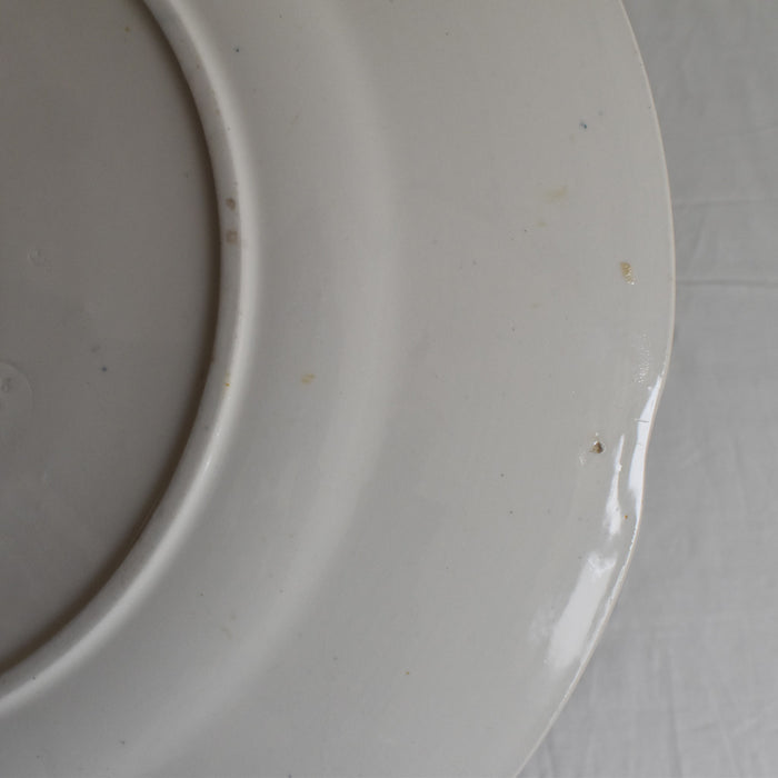 欠けやひびがなくカトラリー跡も少ないとてもいい状態の皿ですが製造の際にできた剥がれのような跡があります。