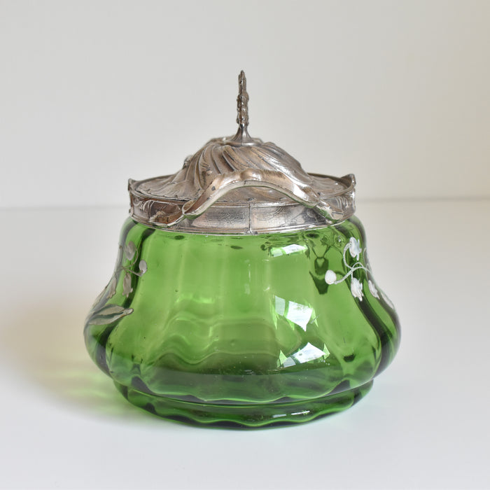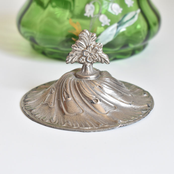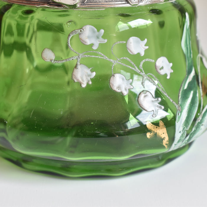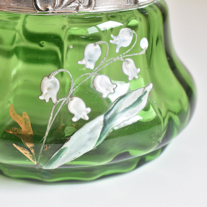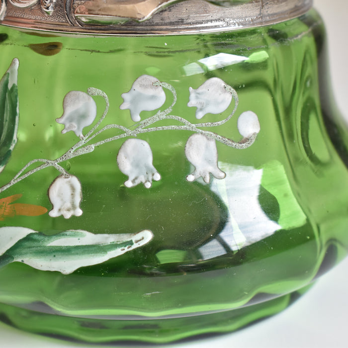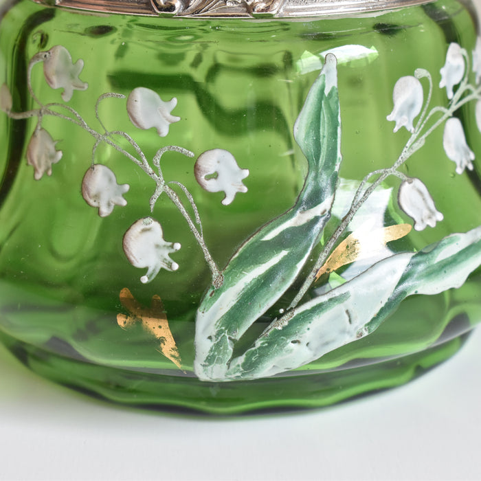 エナメルで描かれた鈴蘭。ぷっくりと立体的でとても可愛らしく、素敵なビスケットジャーです。