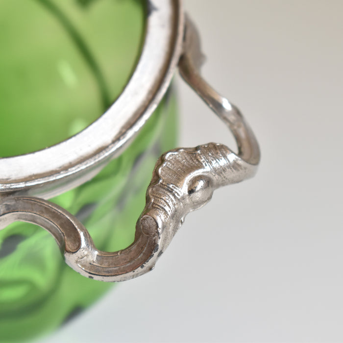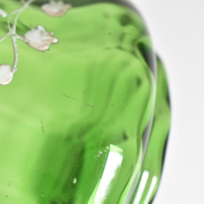 ユニークな形と鮮やかな緑のガラスが印象的です。