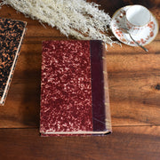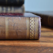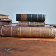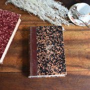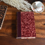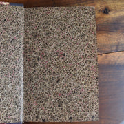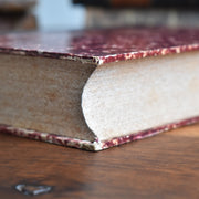 マーブル模様の表紙とダークブラウンのレザー背表紙が、インテリアのアクセントになるアンティークの本です。