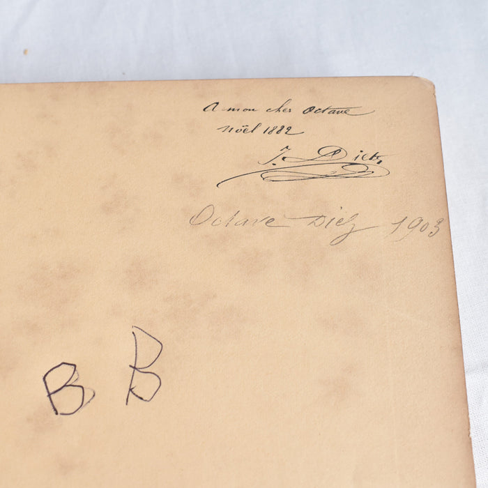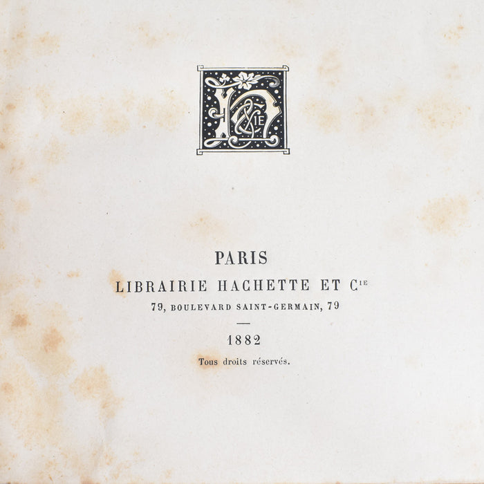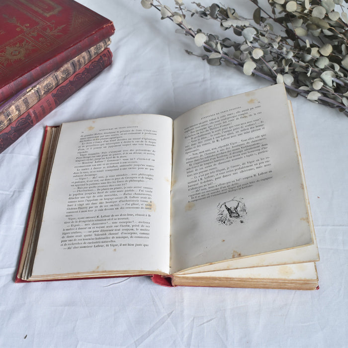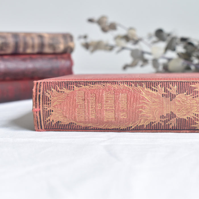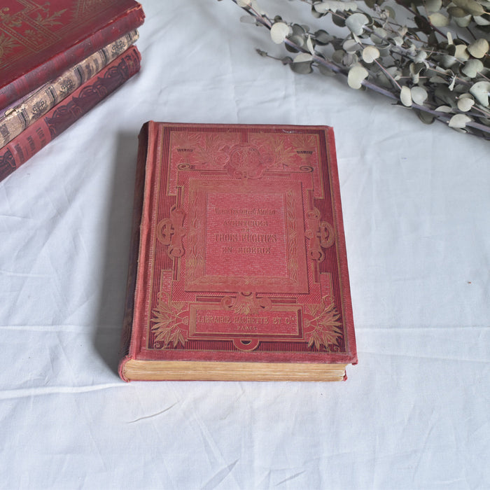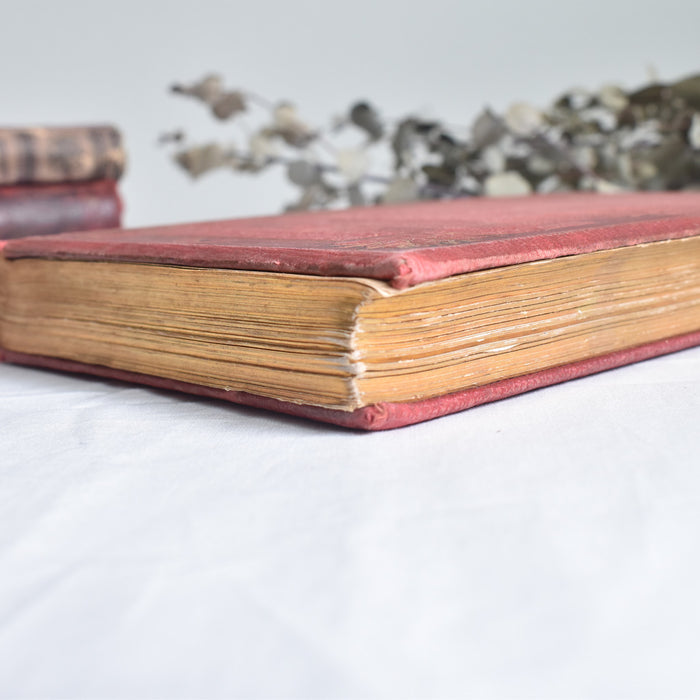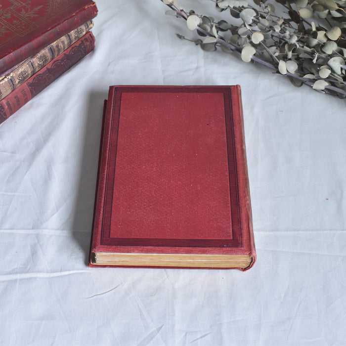19世紀発行のもので赤いエンボスの布地が素敵な表紙です。凹凸のあるざらりとした手触りが歴史を感じさせます。