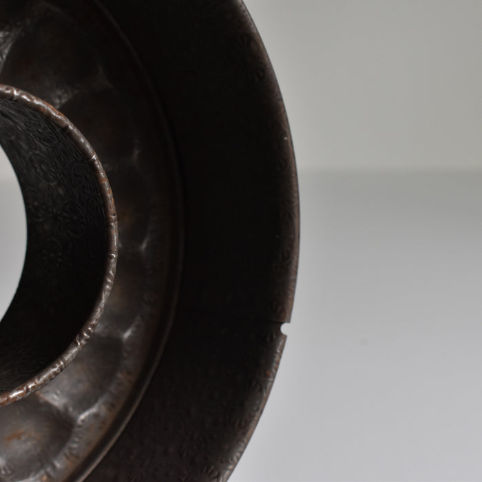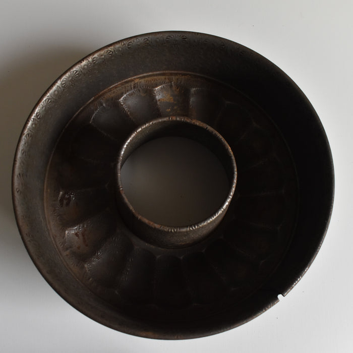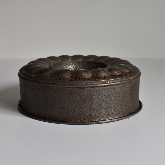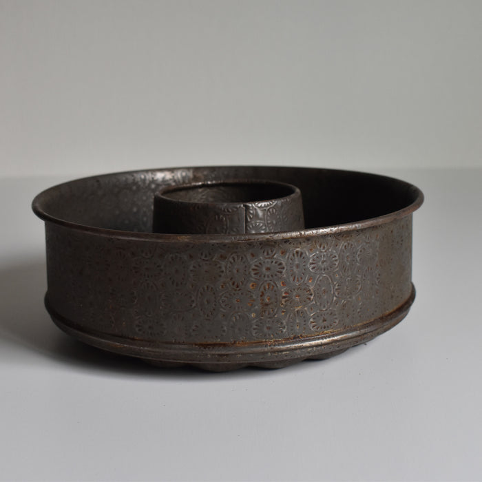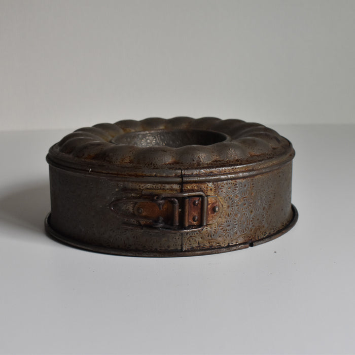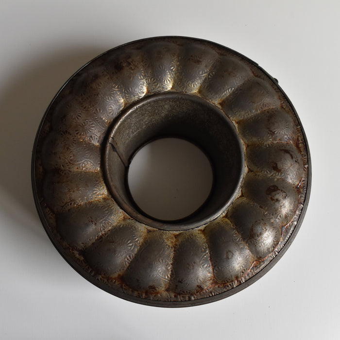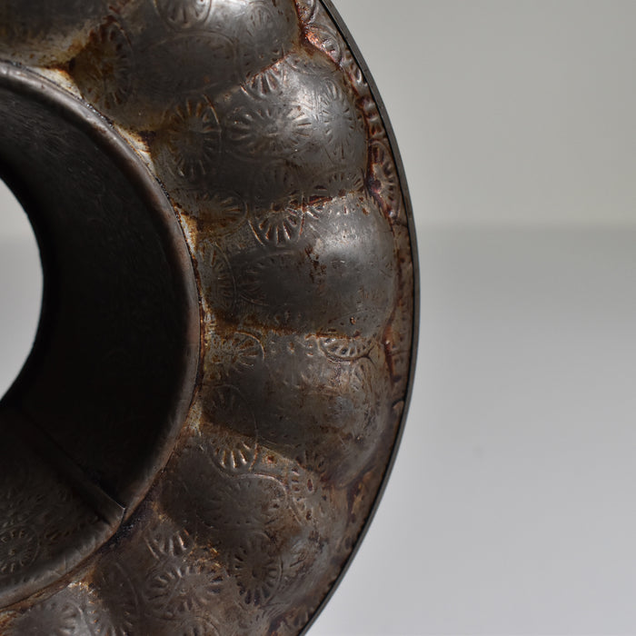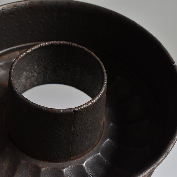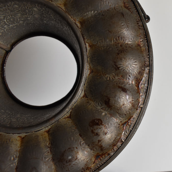 アンティークのケーキ型。サビの色合いが個性的な雰囲気を出しインテリアとしてお楽しみいただけます。