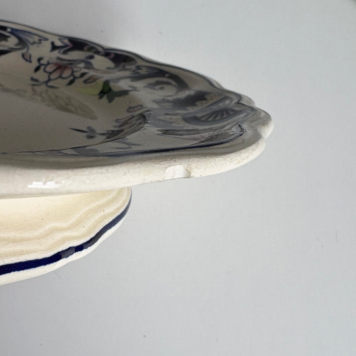 Longchamp窯(ロンシャン窯)のアンティーク脚付きプレート Rouennais(ルーアネー)シリーズです。