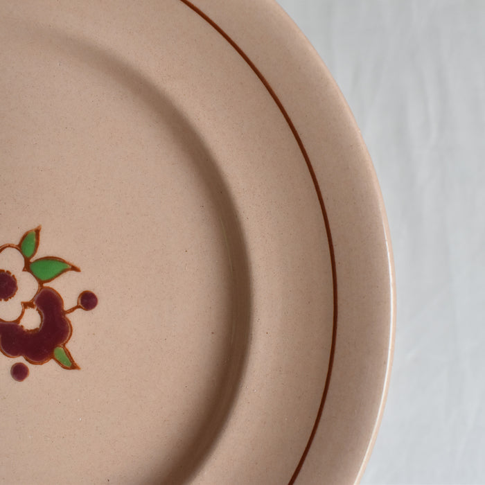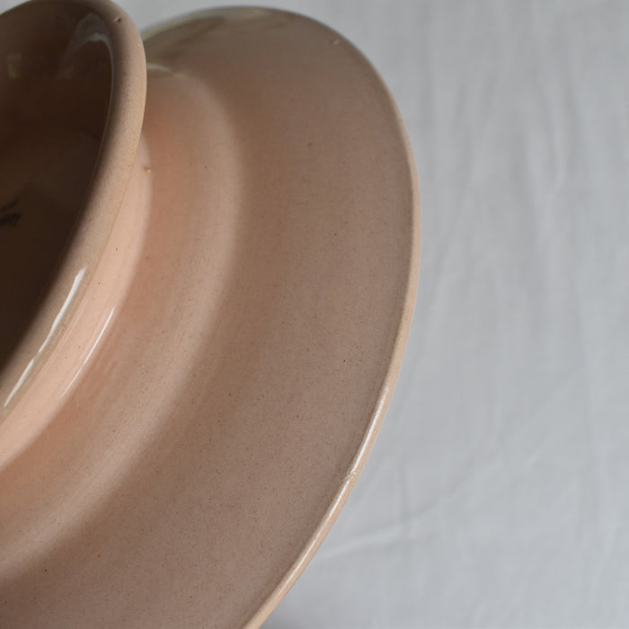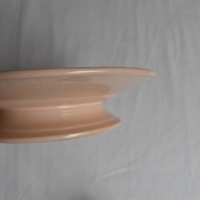 一面ピンクの可愛らしい脚付きプレート。優しく甘い香りがしてきそうです。