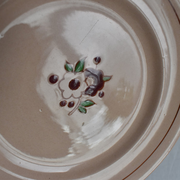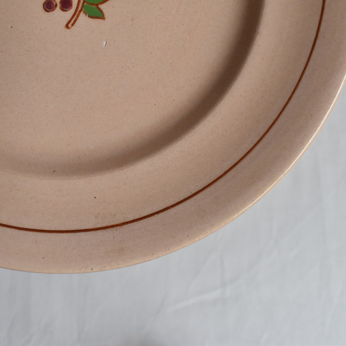 状態:製造時にできた小さな突起や穴がありますが、貫入か欠けヒビなどほぼなく、状態のいいプレートです。 お皿部分に何かが当たって削れたような小さな欠けがあります。