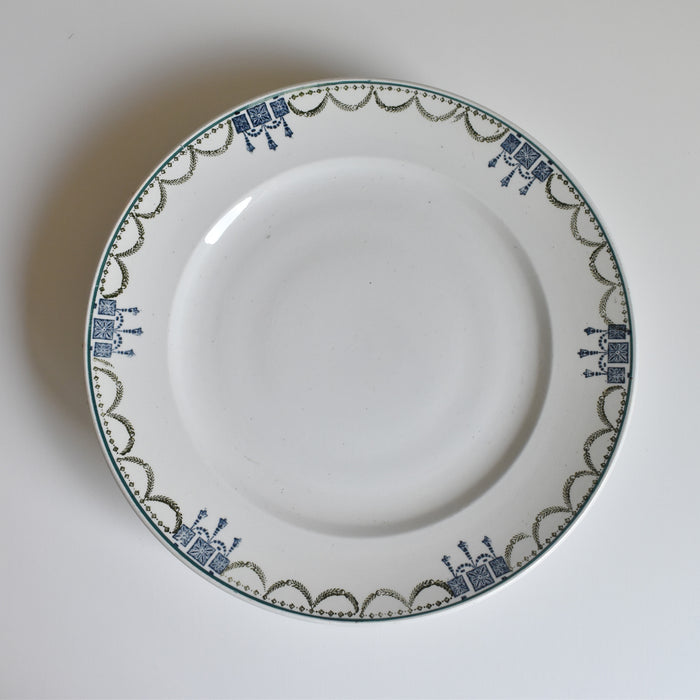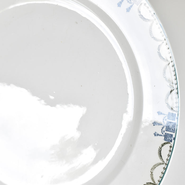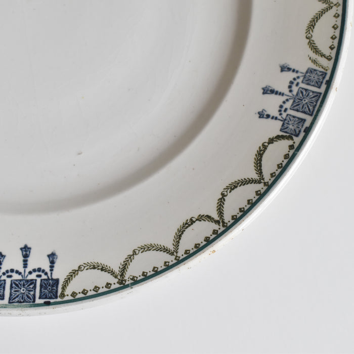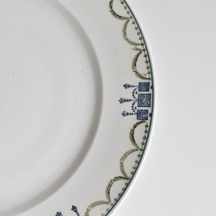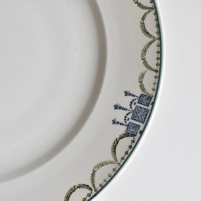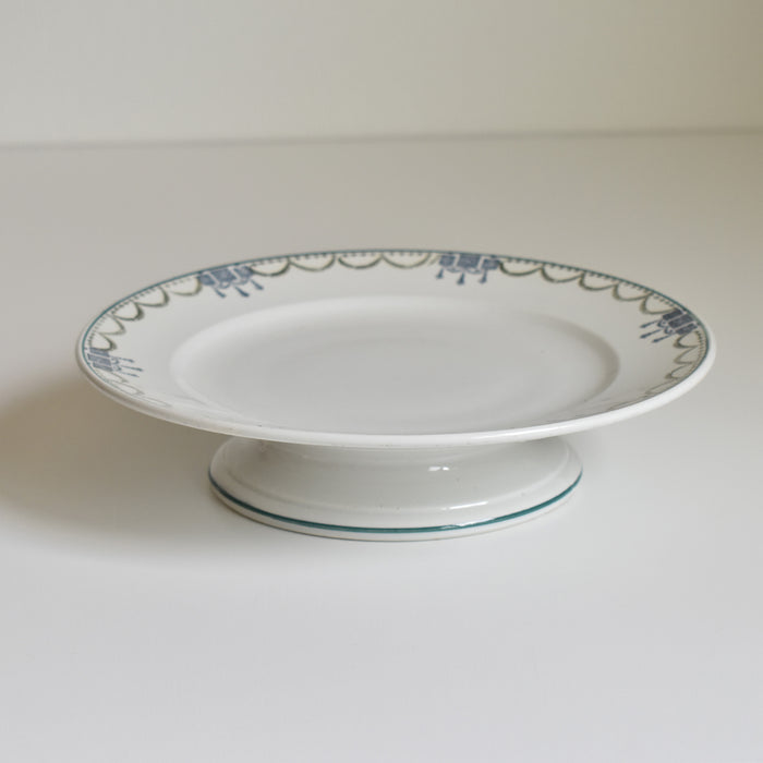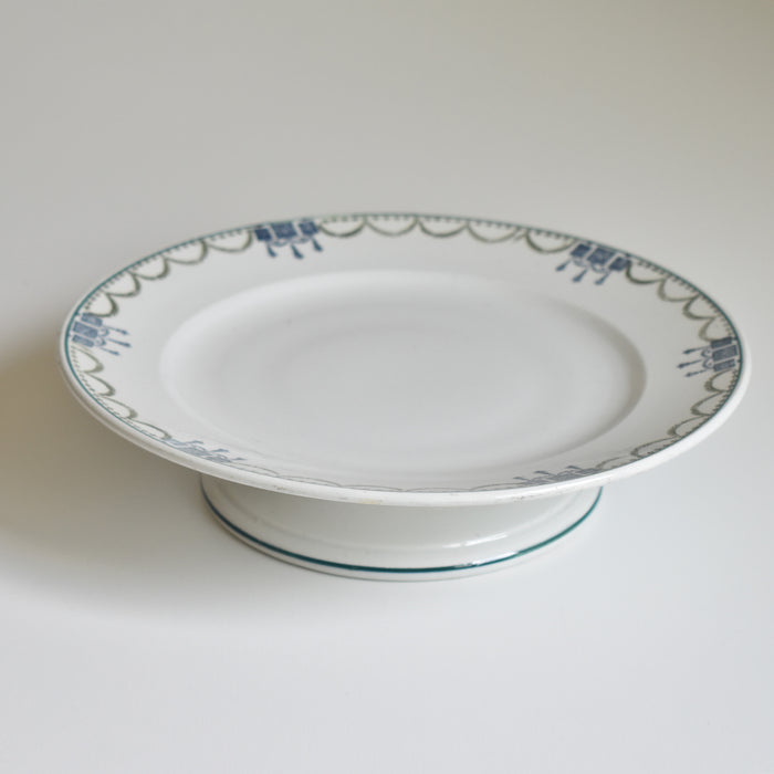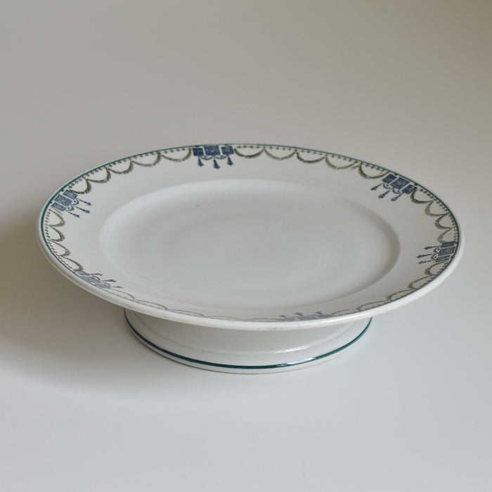 緑と青のガーランドが縁を彩り、上品で美しい脚付きプレート。