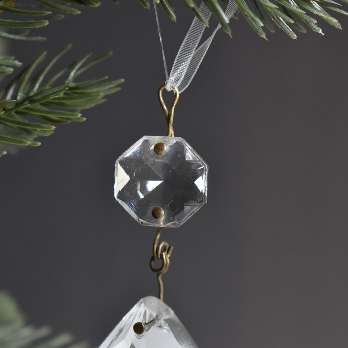 シャンデリアとして使われていた風合いが感じられるよう、金具も当時のままのものを出来るだけ使用しています。細かな傷が入っているパーツもあり、ヴィンテージの柔らかな風合いと美しさをお楽しみいただけるオーナメントです。