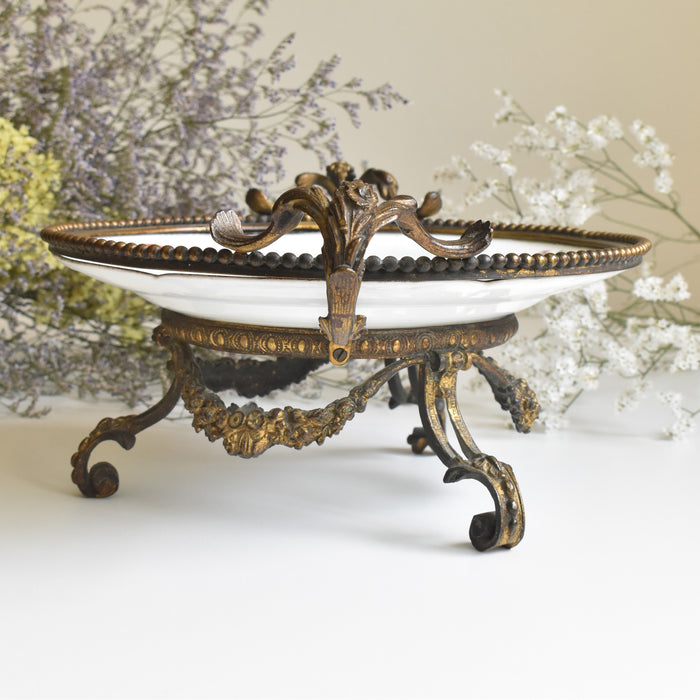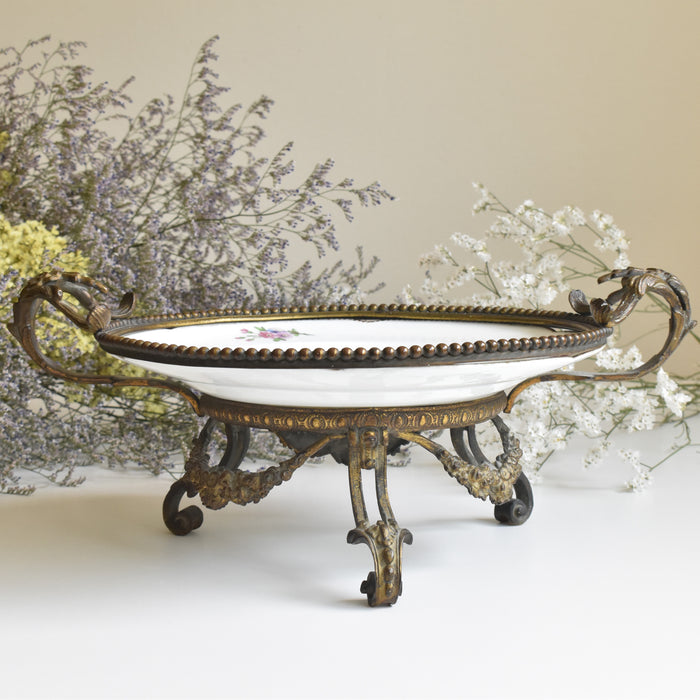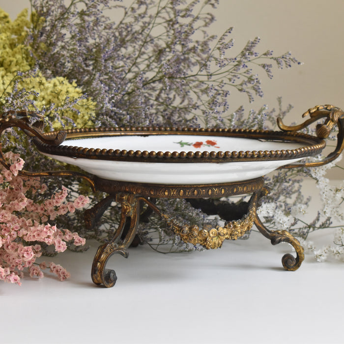 Niderviller窯(ニーデルヴィレー窯)のアンティーク真鍮スタンド付きプレートです。