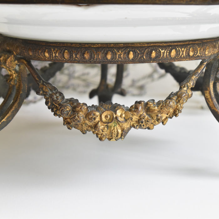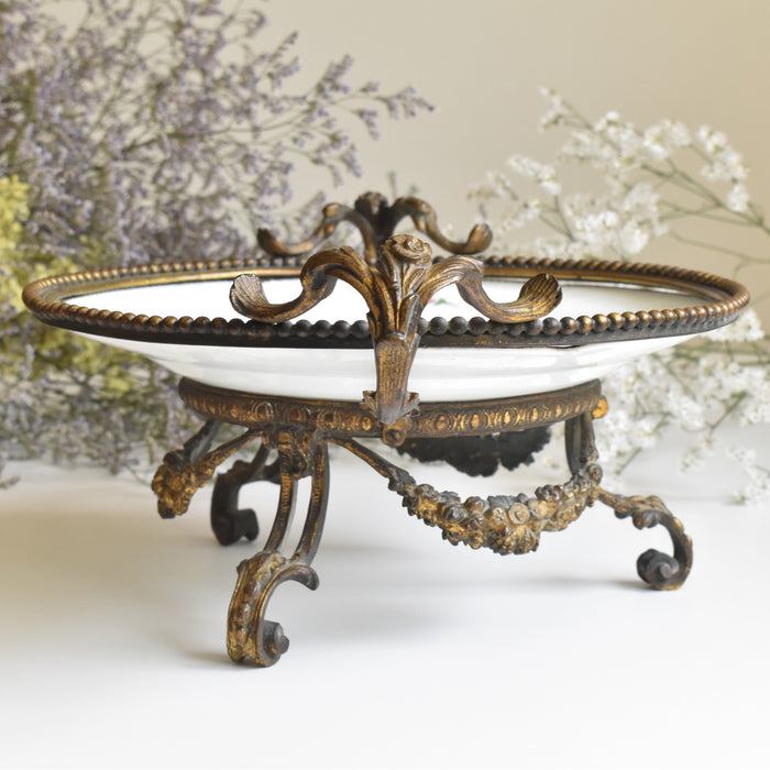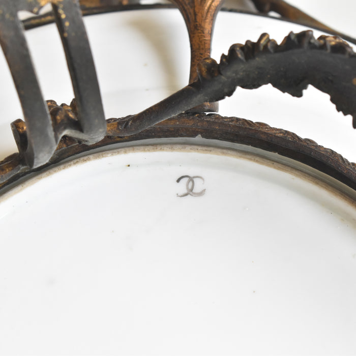 アンティーク真鍮スタンド付き磁器プレート ニーデルヴィレー Comte de Custine